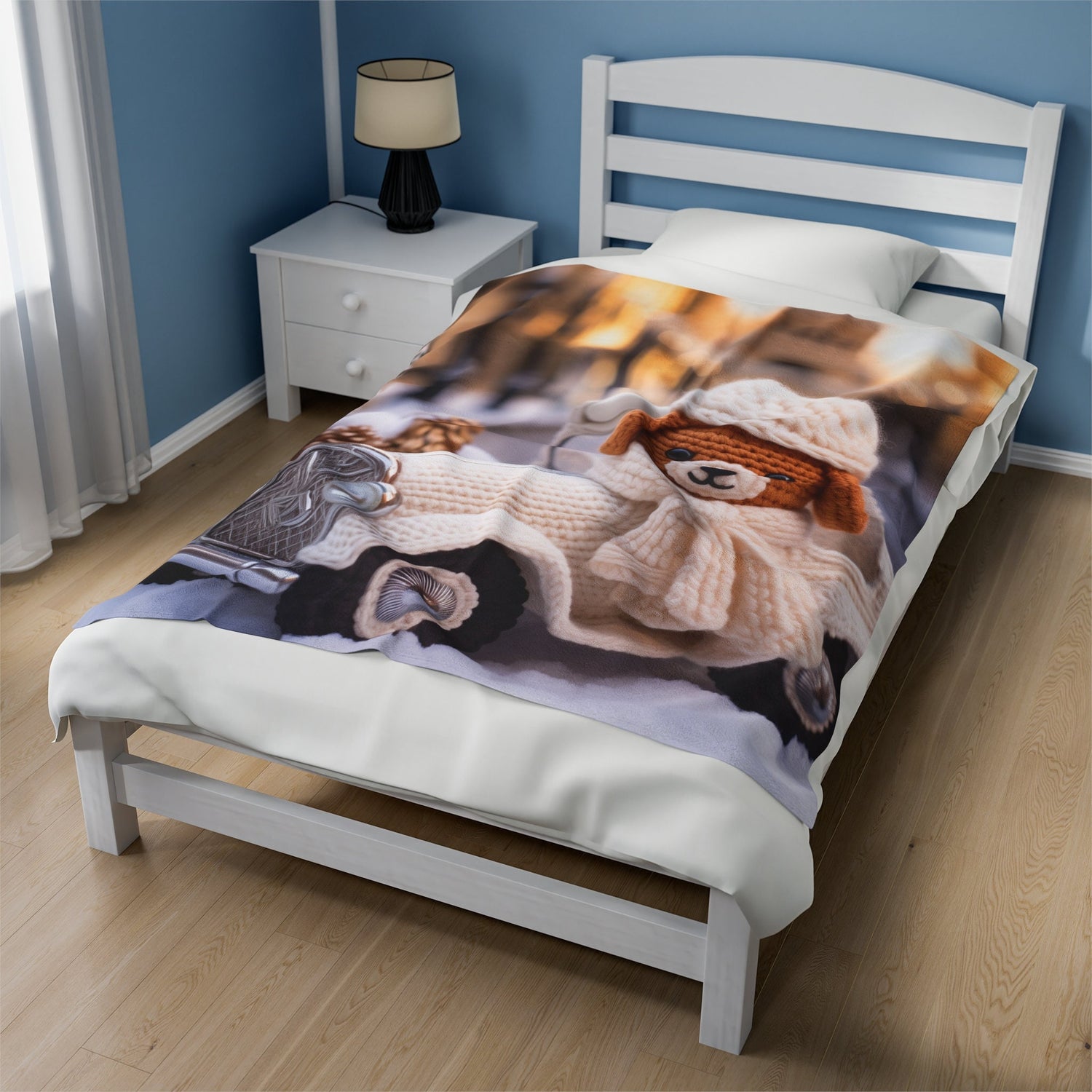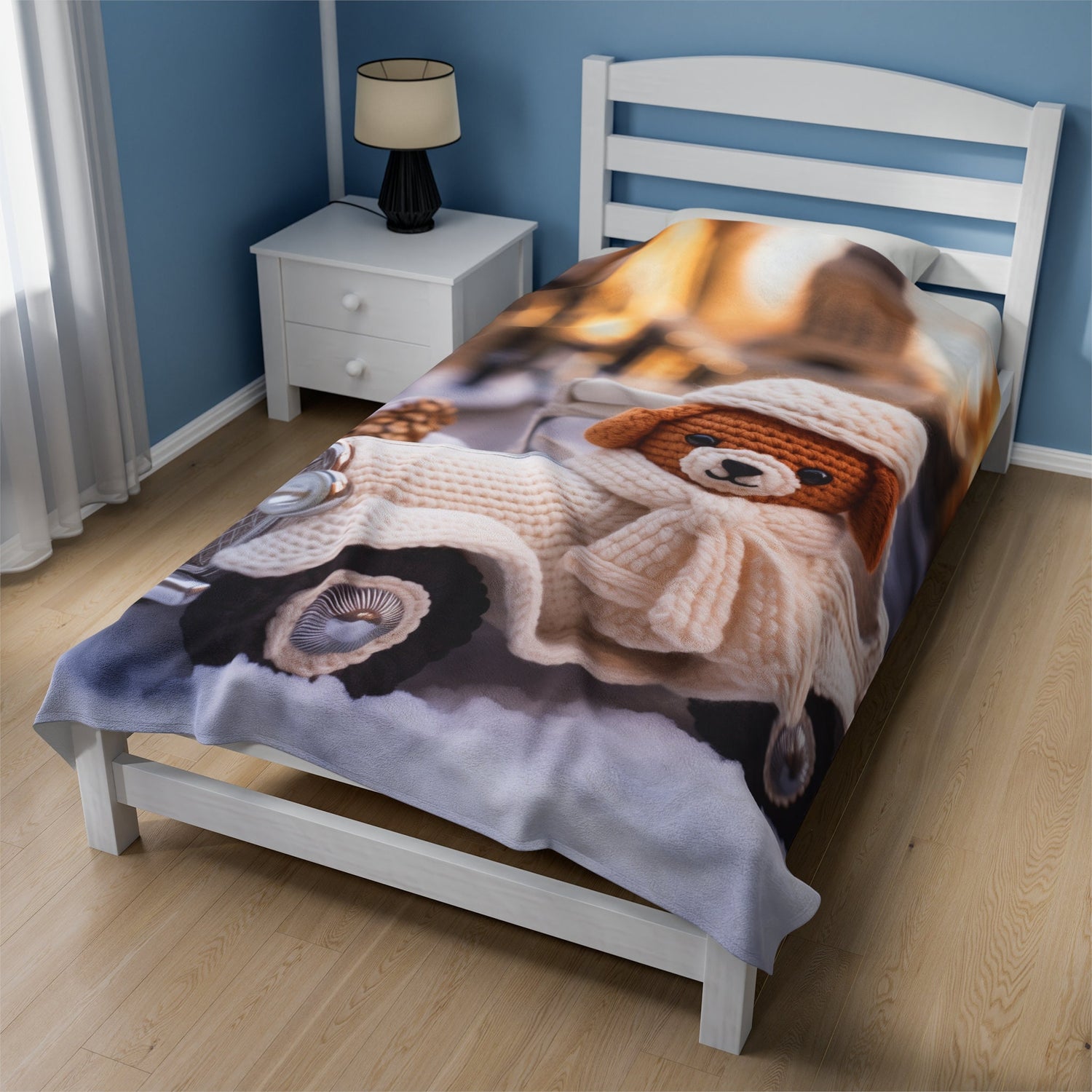 Manta de felpa de terciopelo - Manta de invierno para dormitorio infantil, acogedora manta con diseño de crochet, manta navideña, adorable manta de invierno para niños