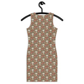 Haz una declaración y luce fabulosa con este vestido ajustado y estampado por todas partes.