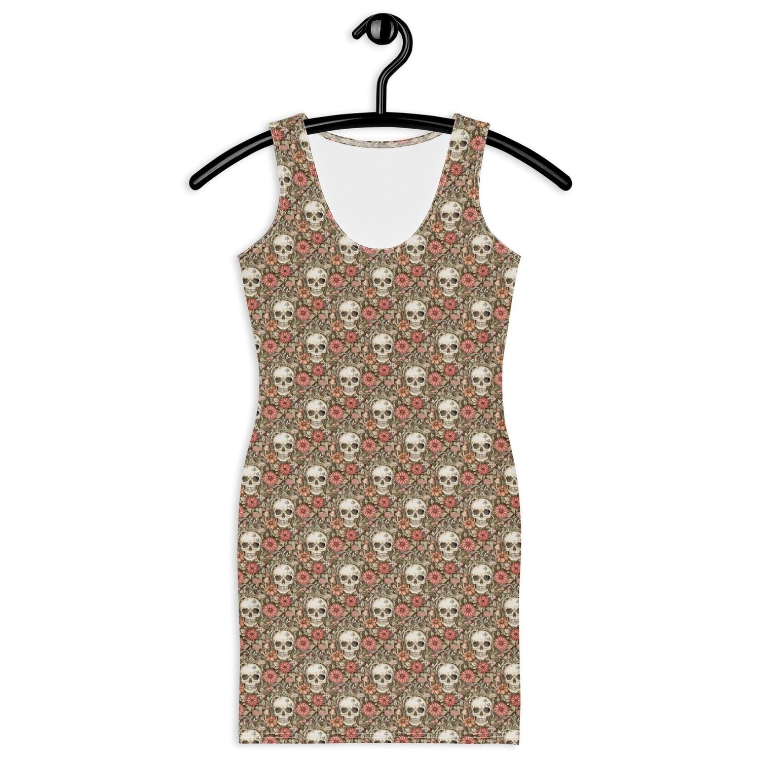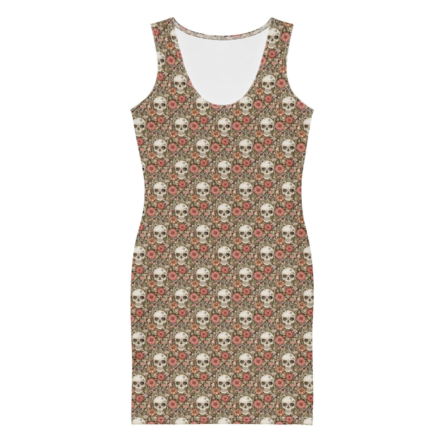 Vestido ajustado, estampado floral de calaveras de azúcar por todas partes, diseño ajustado, lindo blazer de noche para cena, sin mangas, sexy y elegante, vestido femenino por encima de la rodilla