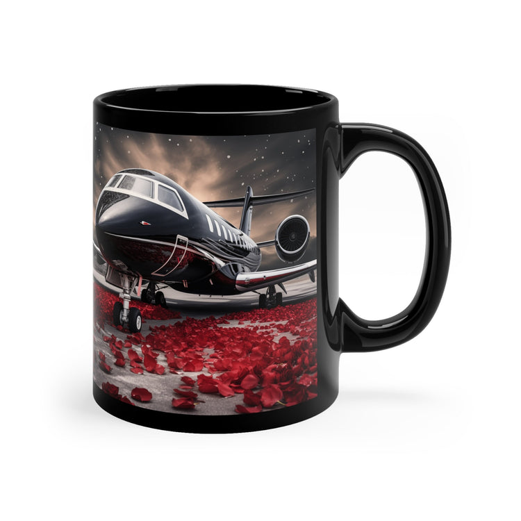 11oz Black Mug, Black Jetsetter fancy red rose petal design traveler beverage cup great for Pilot stewardess gift