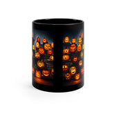 11oz Black Mug, Vibrant pumpkin halloween pattern design casual office everyday office home decorative cup