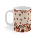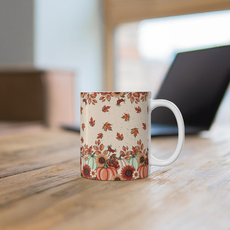 Autumn Leaves & Pumpkins Mug, Cozy Fall Coffee Cup, Thanksgiving Gift, Seasonal Decorations, Harvest Celebration