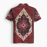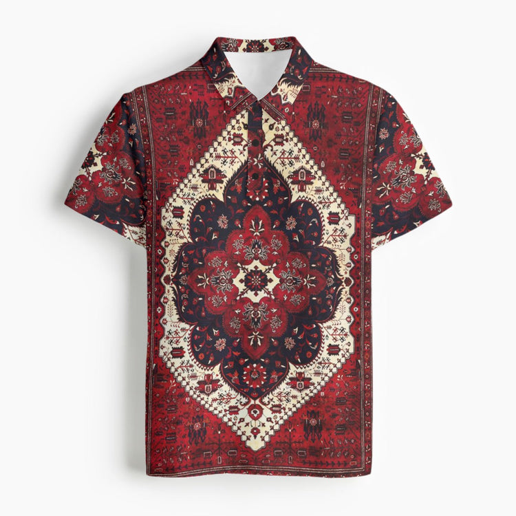 Burgundy Red Geometric Floral Men's Designer Classic Polo Collar Shirt