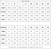 | Centimeter | S | M | L | XL | 2XL | 3XL | 4XL | 5XL |