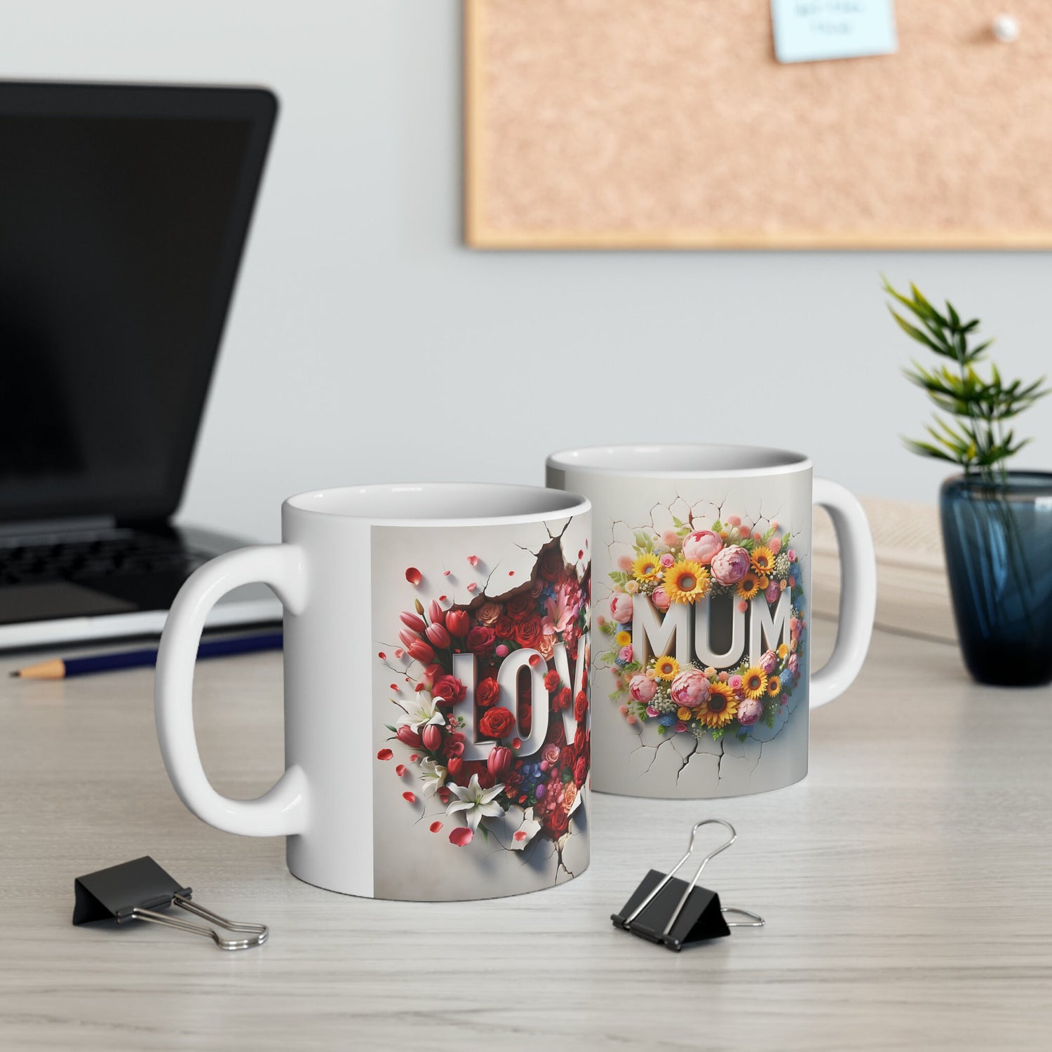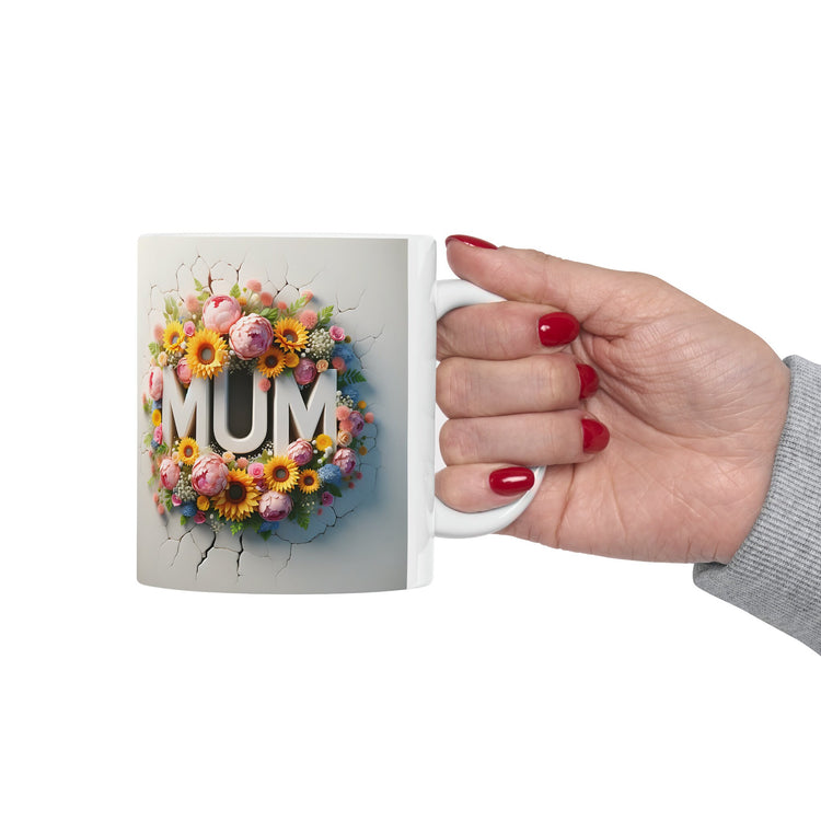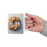 Ceramic Mug, 11oz, 3D Floral MUM sunny bright unique vibrant two sided print coffee tea beverage cup great gift