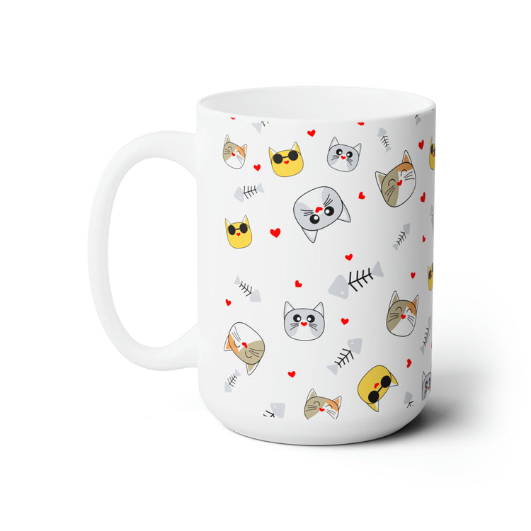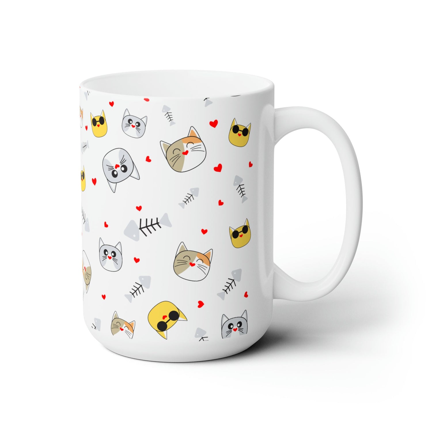Ceramic Mug 15oz, Kitty Mug, Patter Mug, Coffee Mug, Novelty Mug, Animal Print Mug, White mug, Colorful Mug
