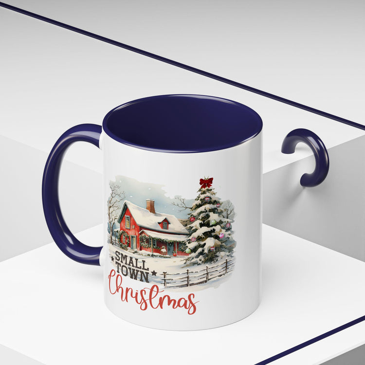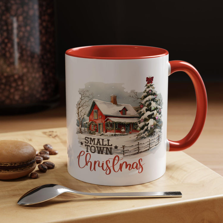 This Small Town Xmas Accent Coffee Mug will bring a cozy and festive vibe to your farmhouse kitchen. Perfect for holiday designer mugs, this country-style decor is ideal for Christmas celebrations and those who love a touch of country charm in their home.