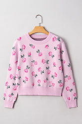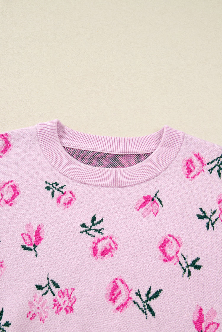 Delicacy Sweet Floral Print Drop Shoulder Cropped Sweater