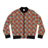 Floral Koi Women's Bomber Jacket, Bohemian Fashion, Spring Style, Casual Outerwear, Unique Gift for Her, Trendy Jacket