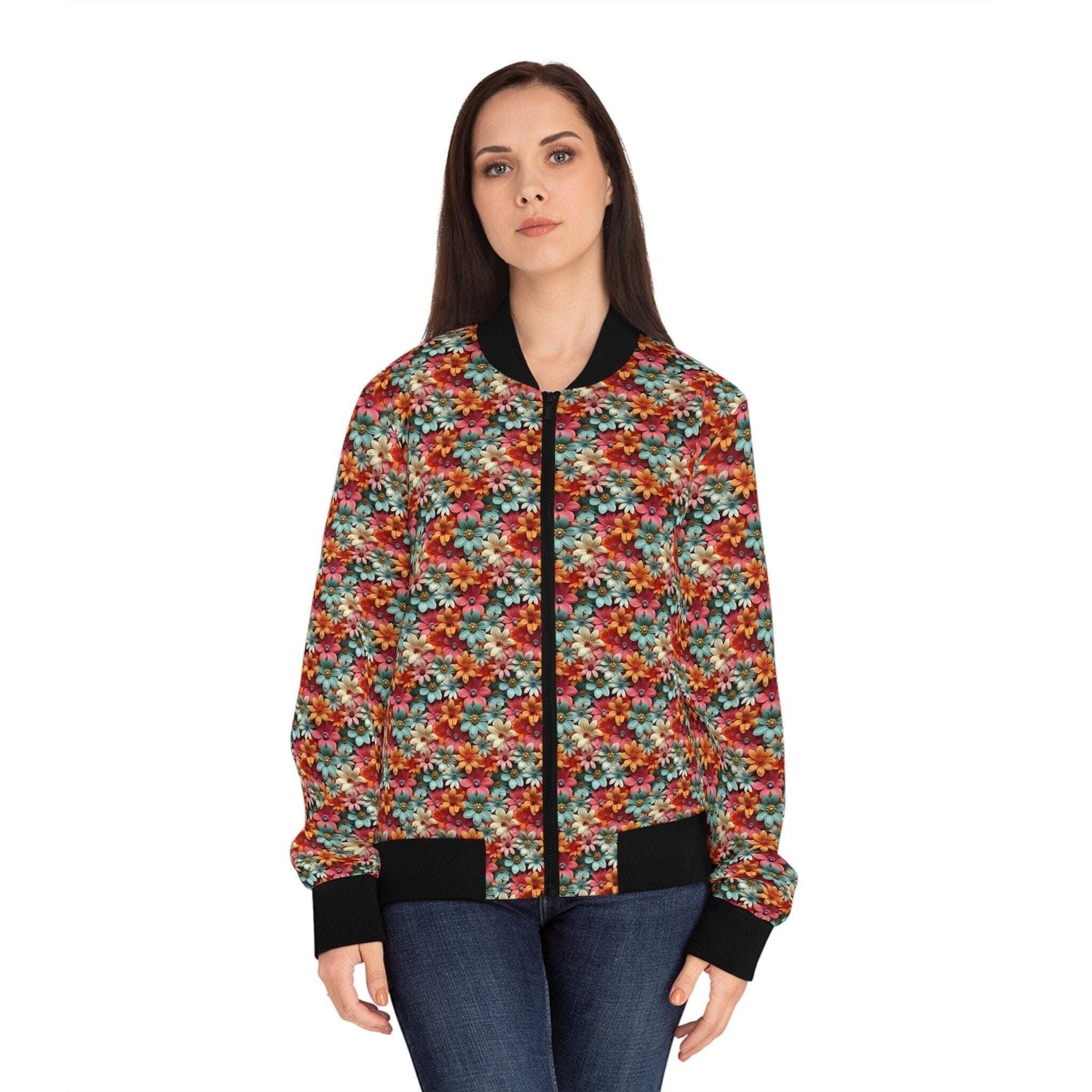 Elevate your wardrobe with this stylish Bomber Jacket. Perfect for a casual outing or a cozy night in, this jacket exudes a sense of comfort and trendiness. The eye-catching floral design adds a touch of elegance, making it a versatile piece for any season. Ideal for fashion-forward women, it combines functionality with flair, making it perfect for everyday wear or special occasions like birthdays and gatherings. Embrace the vibe of laid-back sophistication and express your unique style during holidays and celebrations.