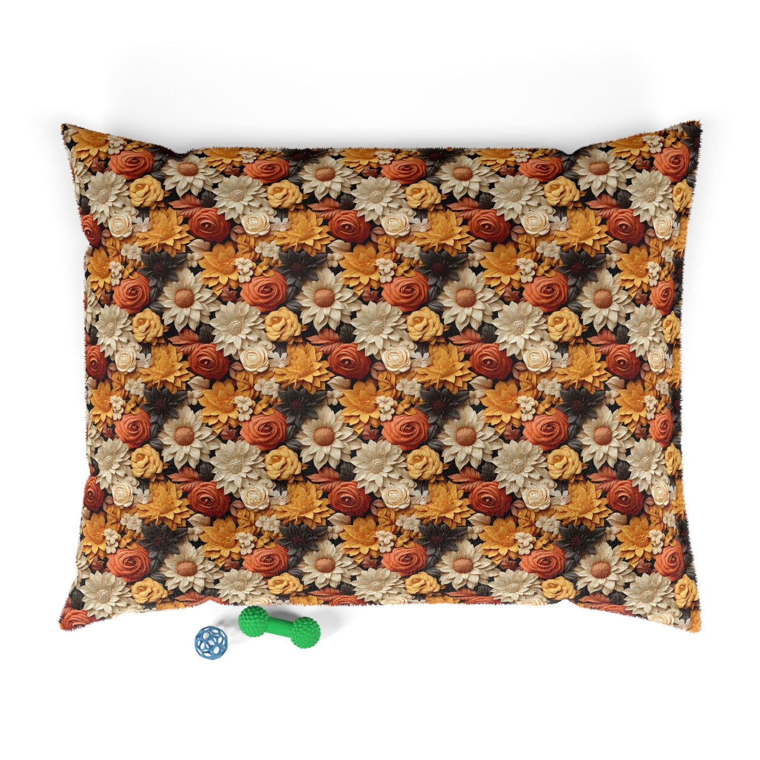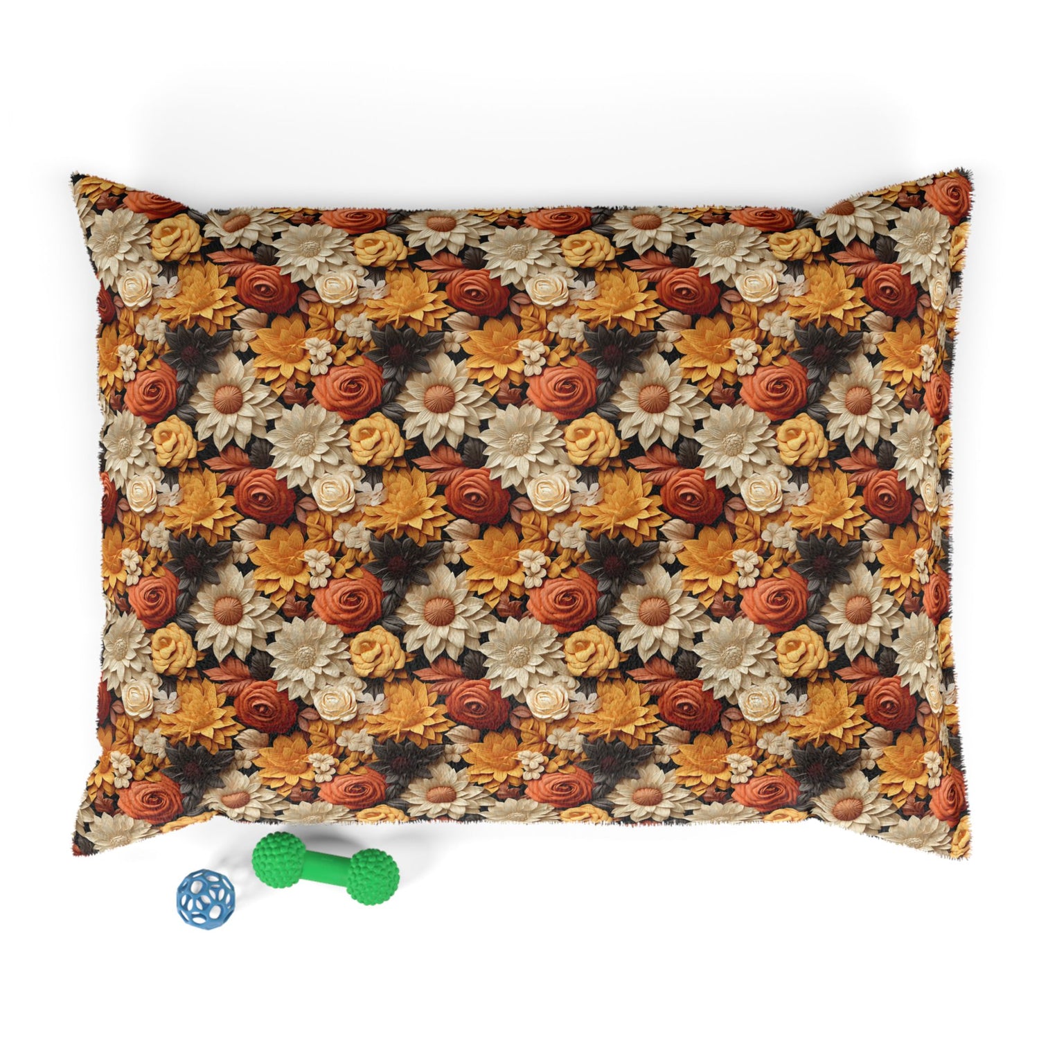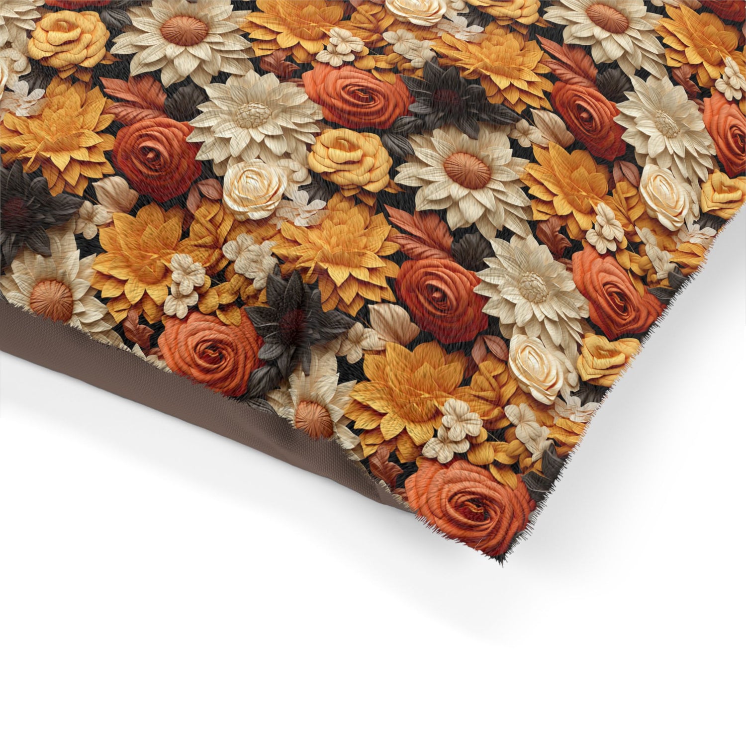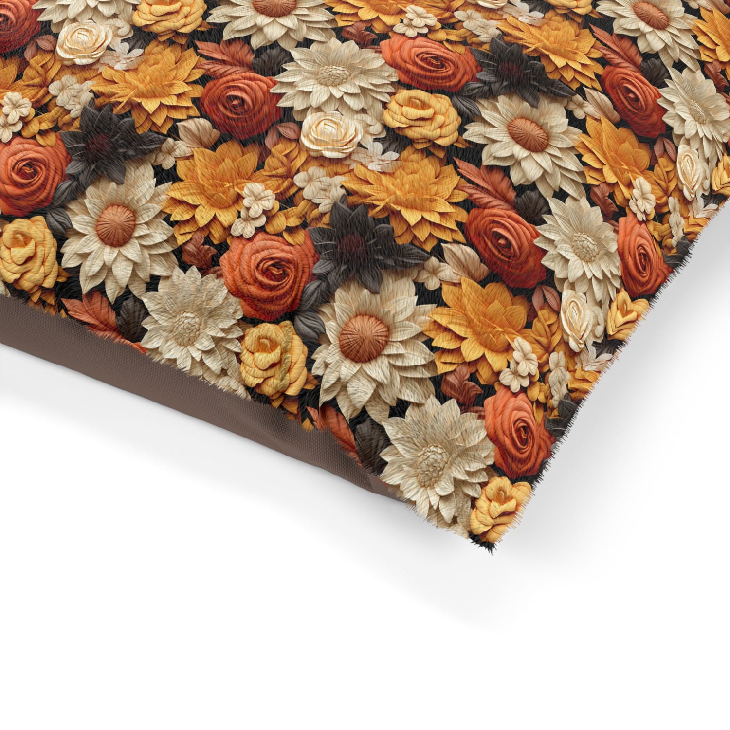 Floral Pet Bed, Fall Flowers Pattern, Cozy Fleece Cat & Dog Comfy Bed