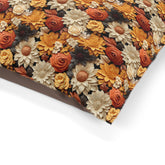 Stay cozy with this Fall floral Pet Bed featuring an all-over pattern print design. Made from soft, warm, and cozy fleece, this pet bed is the perfect holiday gift for dogs and cats. It will add a touch of seasonal charm to any room decor, creating a comfortable space for your furry friends to relax and sleep.