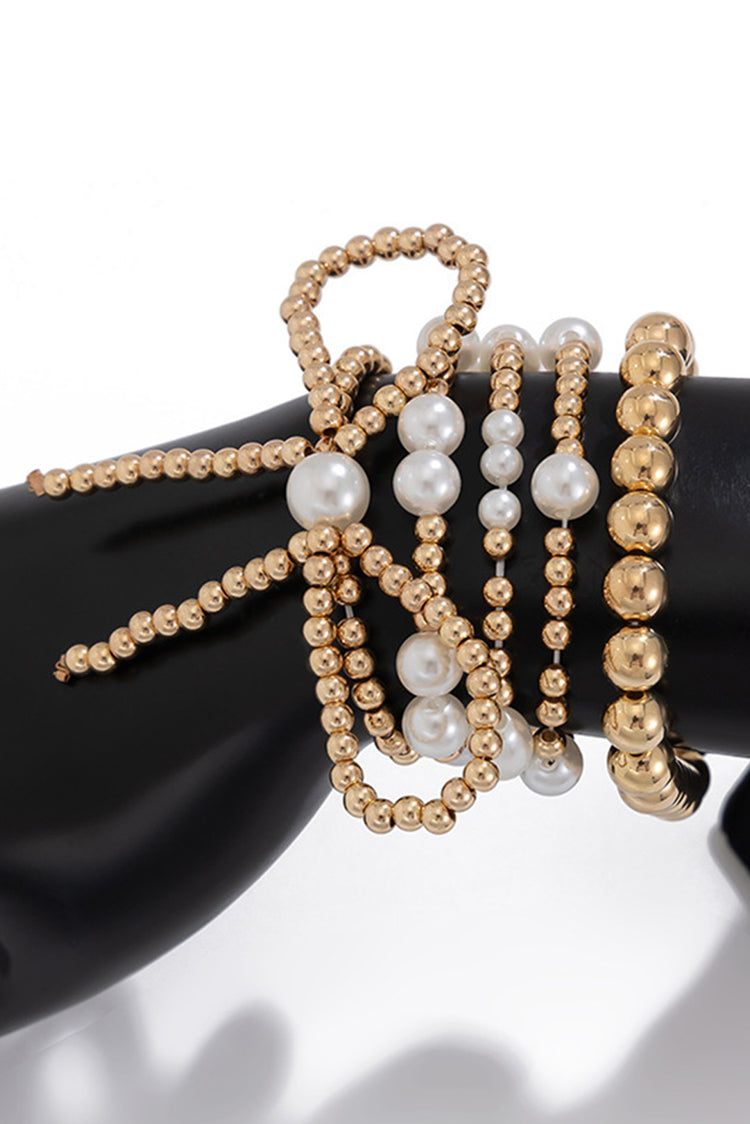 Gold Bow Knot Pearl Beaded Multi Layered Bracelet Set