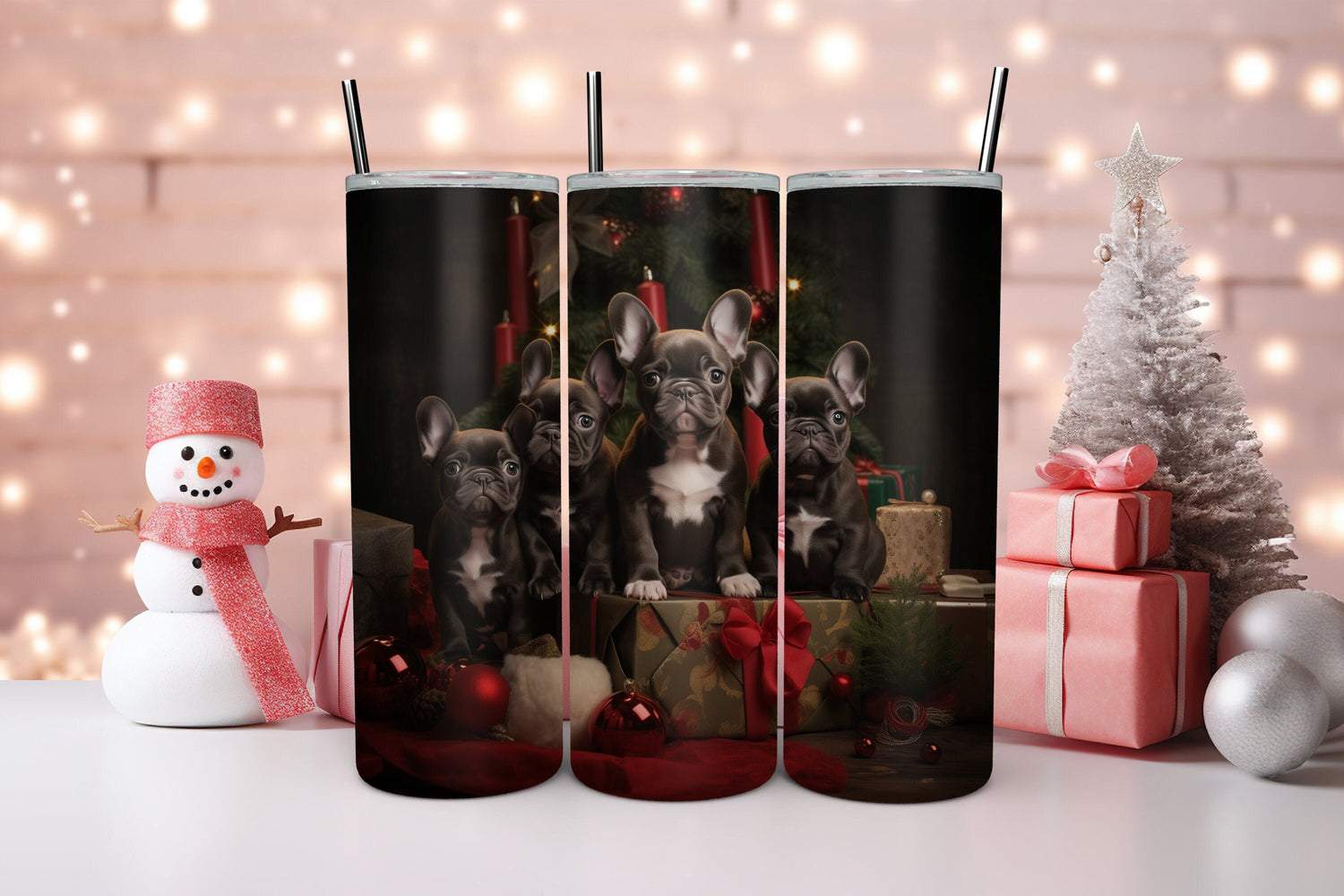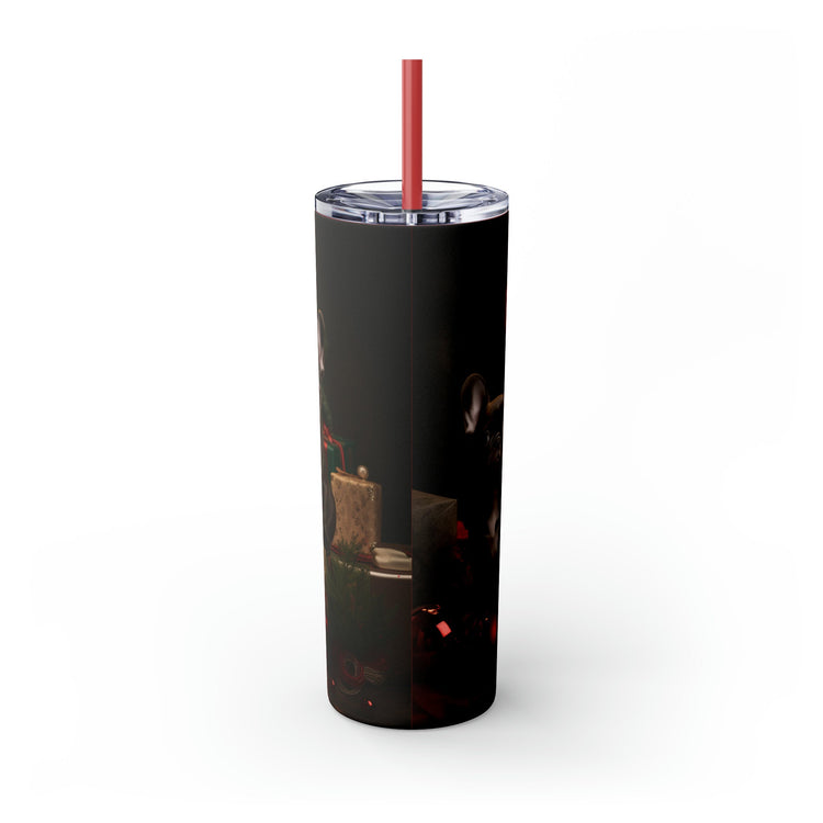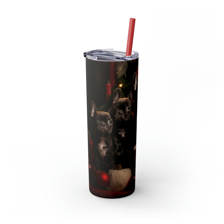 Holiday Tumbler with Straw, 20oz, Frenchie dogs, Holiday Tumbler, Designer cup, Dog lover cup, Sippy cup, Xmas gift, Stocking, Holiday