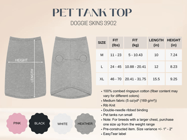 This adorable pet tank top brings a playful vibe to your furry friend's wardrobe. Made from soft, breathable fabric, it ensures comfort and ease for all-day wear. Perfect for sunny strolls in the park or cozy lounging at home, this tank top showcases your pet's personality while keeping them stylish. Ideal for pet lovers, this product is a wonderful gift for special occasions like birthdays, holidays, or just because! Your pets deserve to look cute and feel comfortable, making this tank top a must-have for every pet owner’s collection!