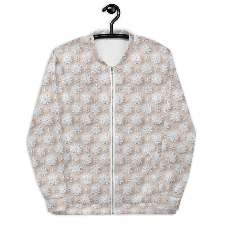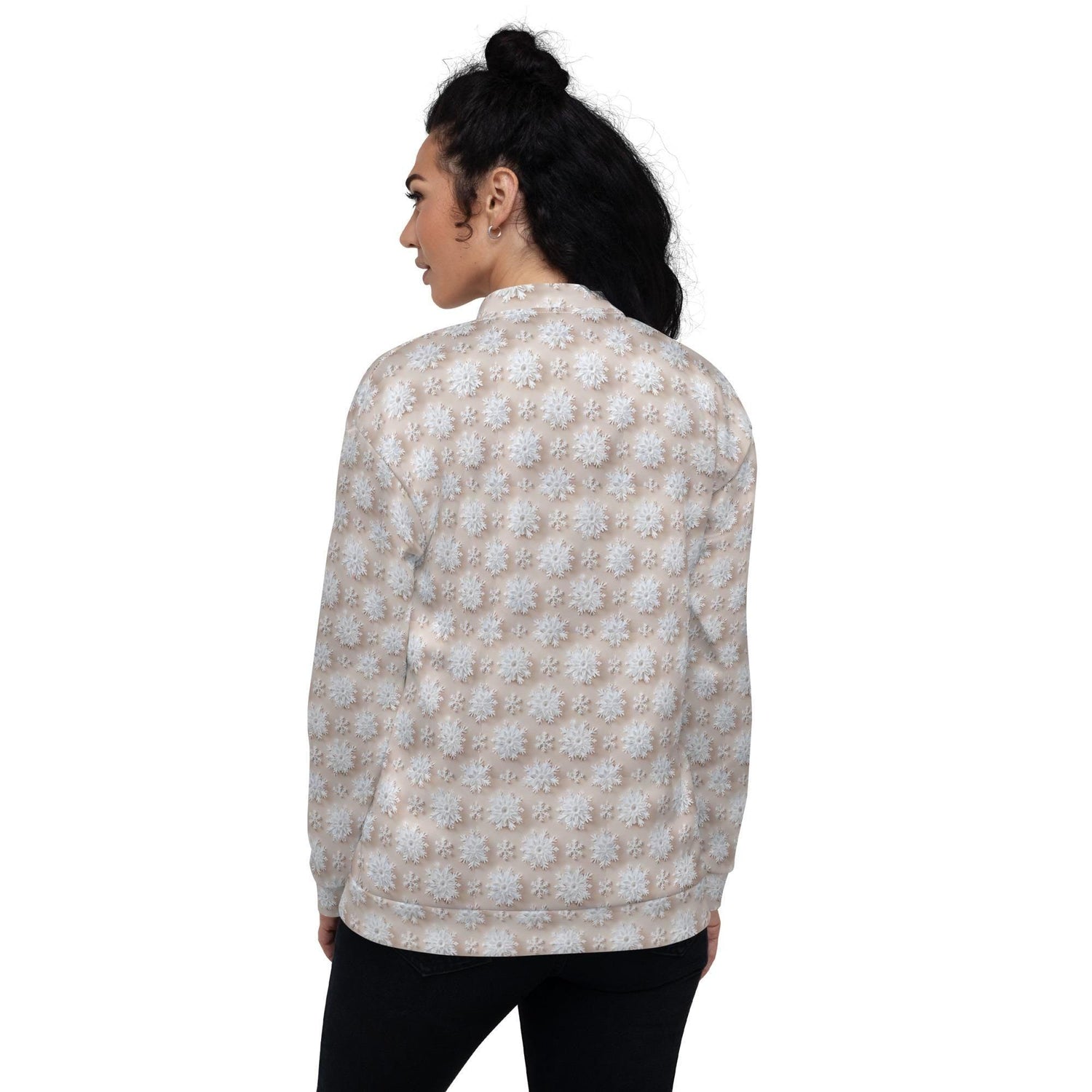 Luxury White Christmas Snowflake Designer Bomber Jacket - Festive Winter Fashion Statement for Women