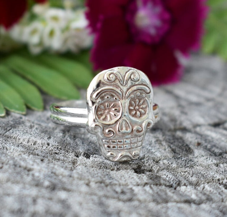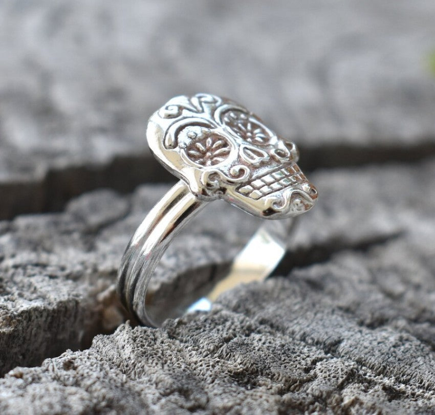 Retro Sugar Skull Silver Ring- Day of The Dead Fashion