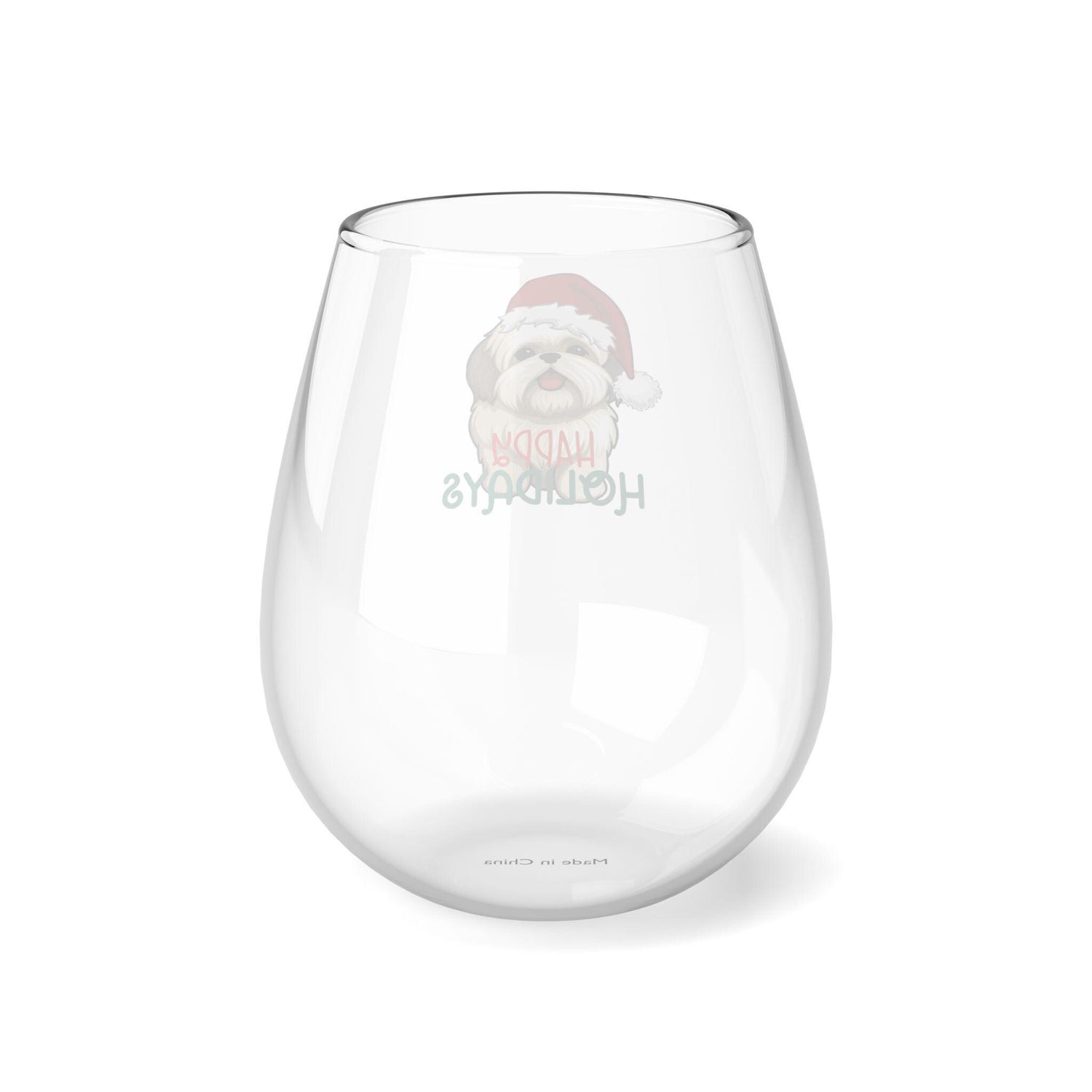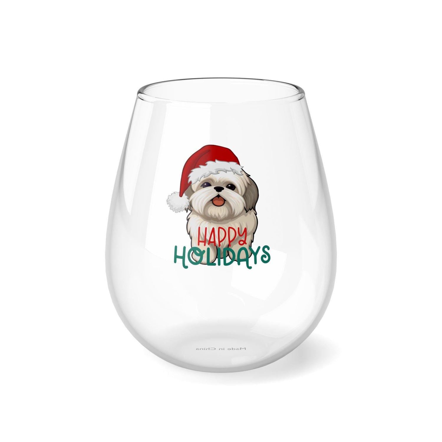 Shitzu Stemless Wine Glass, 11.75oz - Dog Lover Party Red Wine Glass, Xmas Gift, Holiday Glassware, Cute Animal Glass, Pet Owner Present