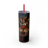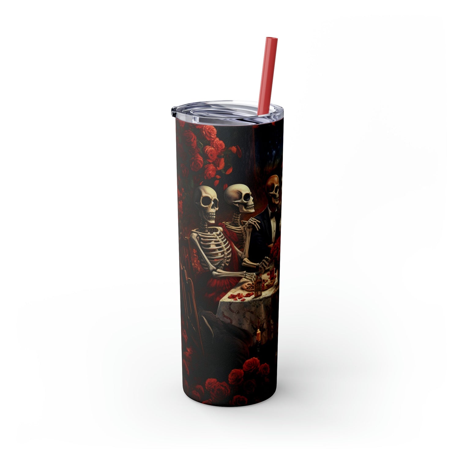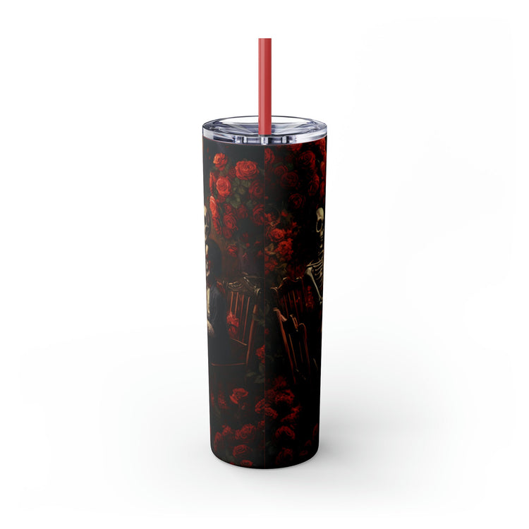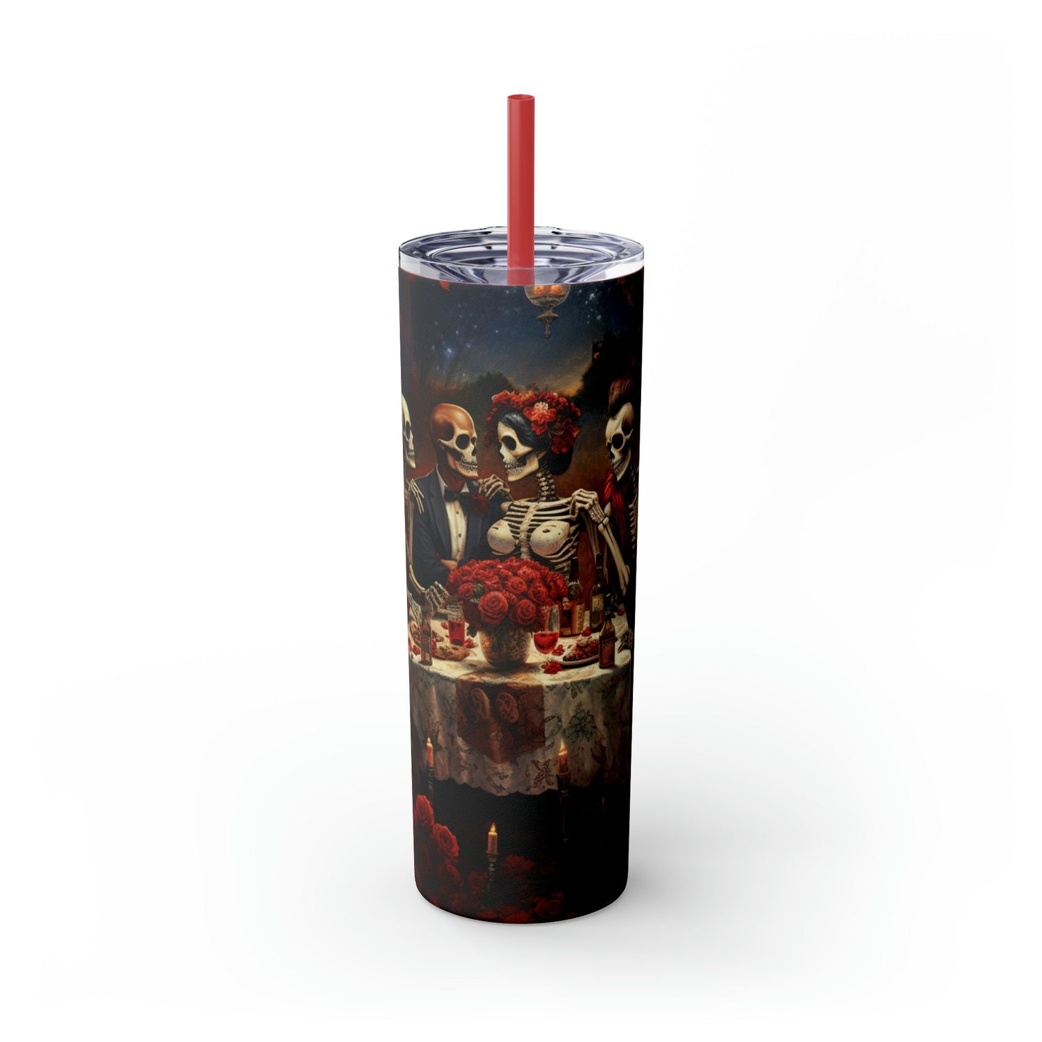 Skinny Tumbler with Straw, 20oz Day of the dead Halloween artistic dead man party dinner portrait scene design hot cold beverage travel cup