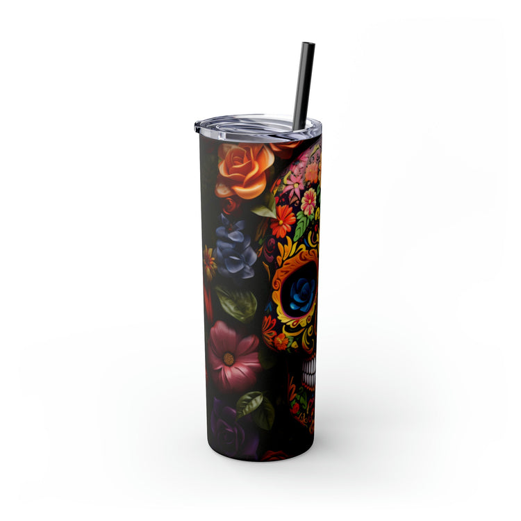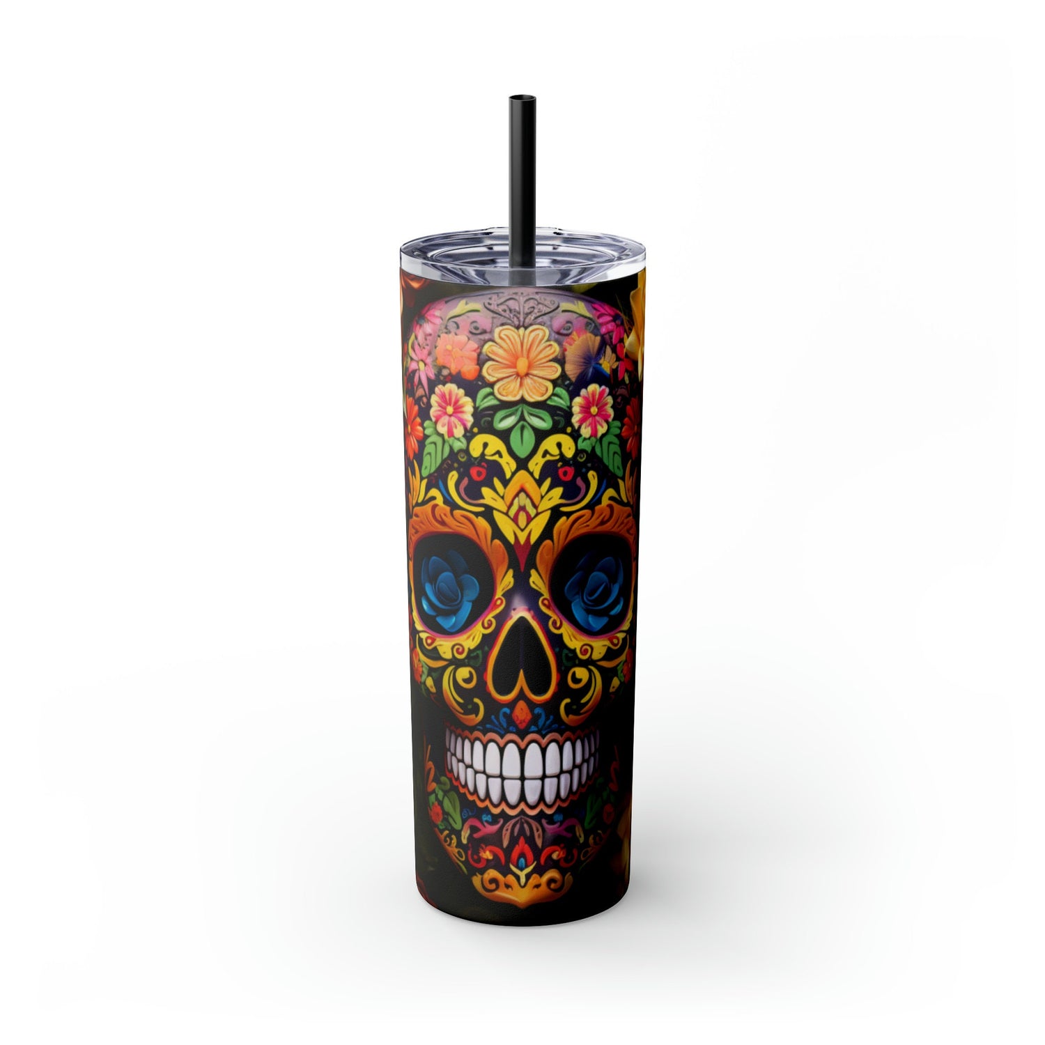 Skinny Tumbler with Straw, 20oz, Dia de Los Muertos, Day of the Dead, Halloween tumbler, Cadaver design, Artistic Tumbler, Colorful Tumbler