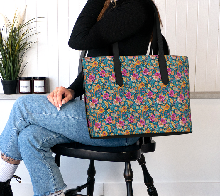 Spring Paisely Leather Tote Bag | All Purpose Versatile Bag