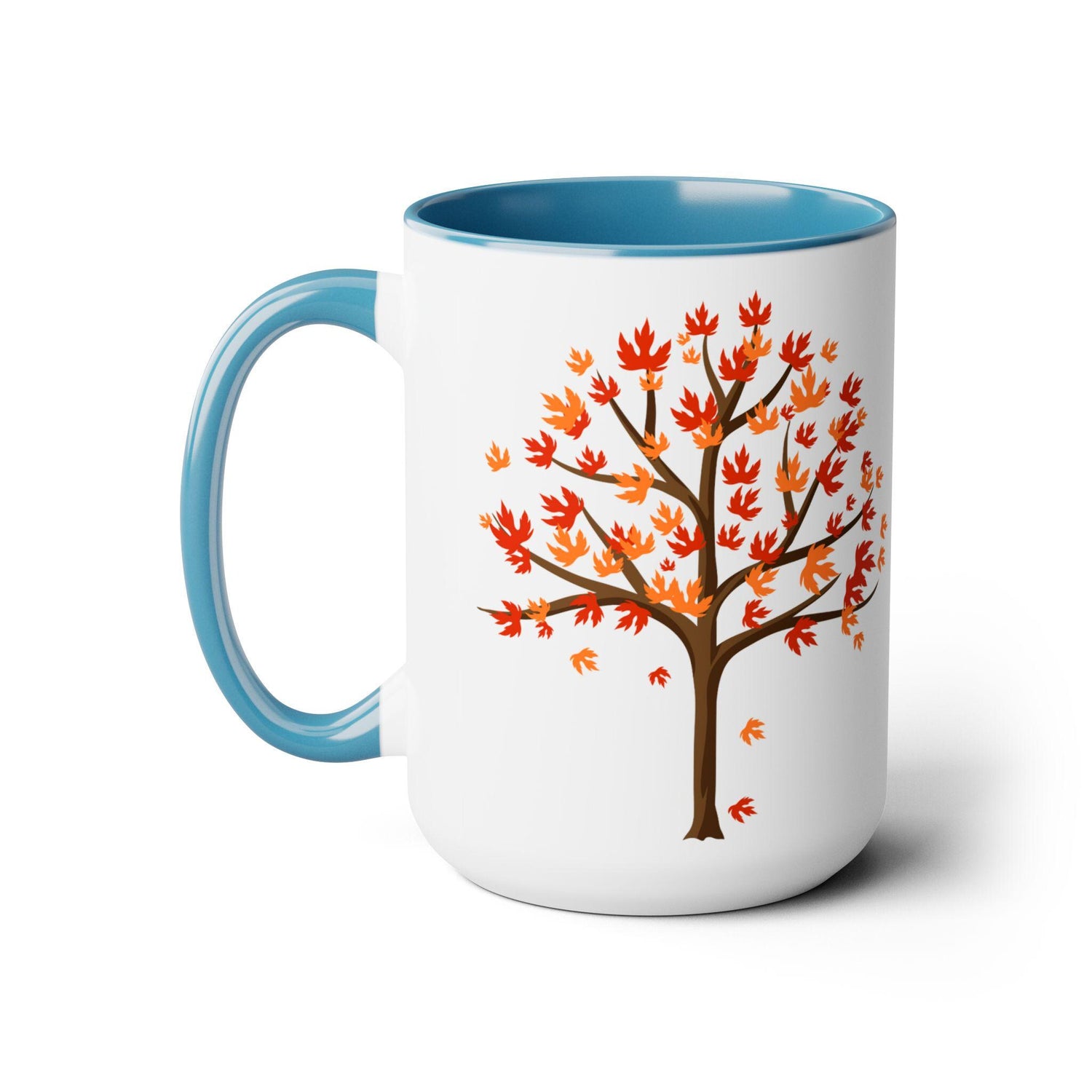 Two-Tone Fall tree coffee mug falling leaves tree design Autumn home kitchen decor beverage cup