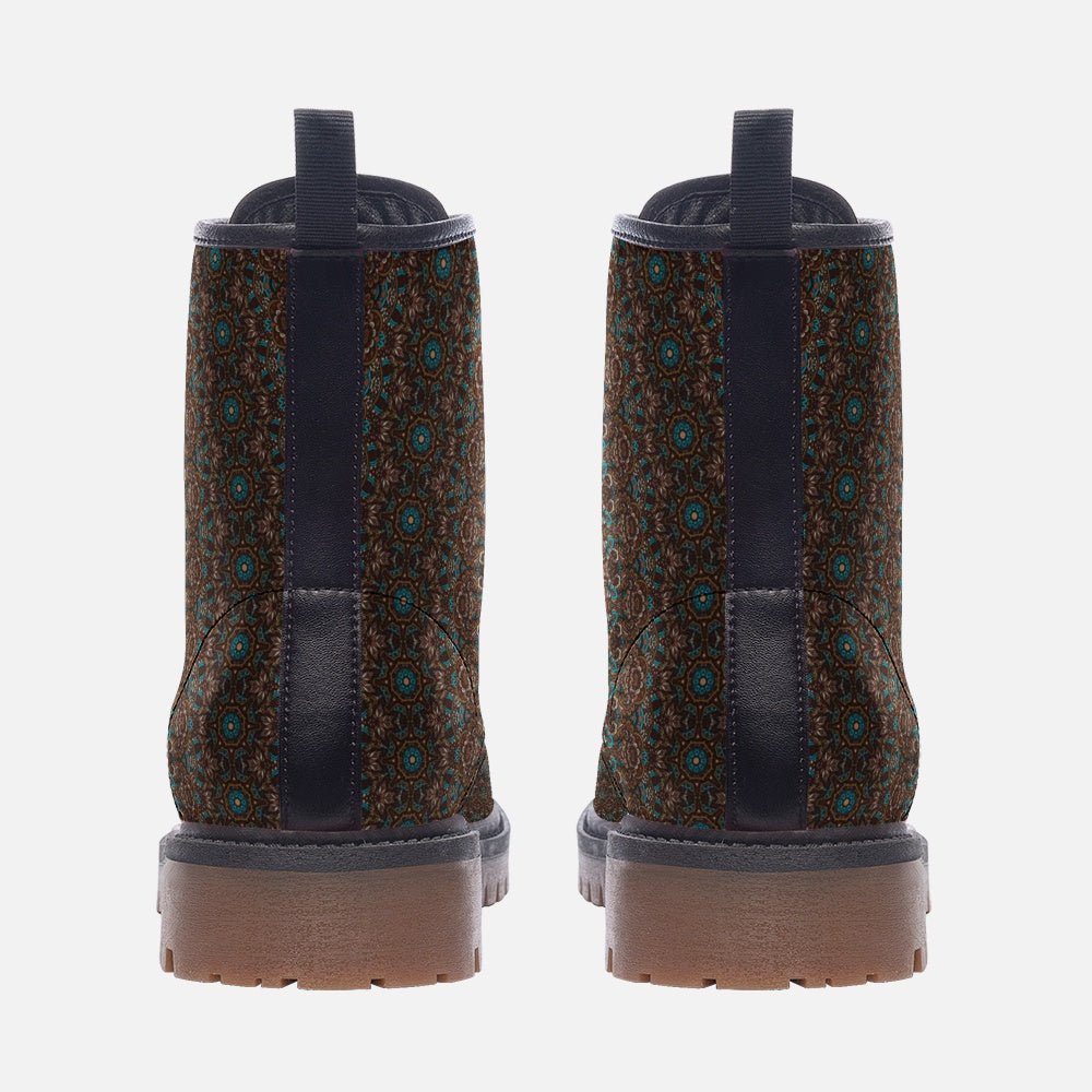 Unisex Casual Leather Lightweight Brown Teal Blue Ethnic Textile Pattern Design boots MT