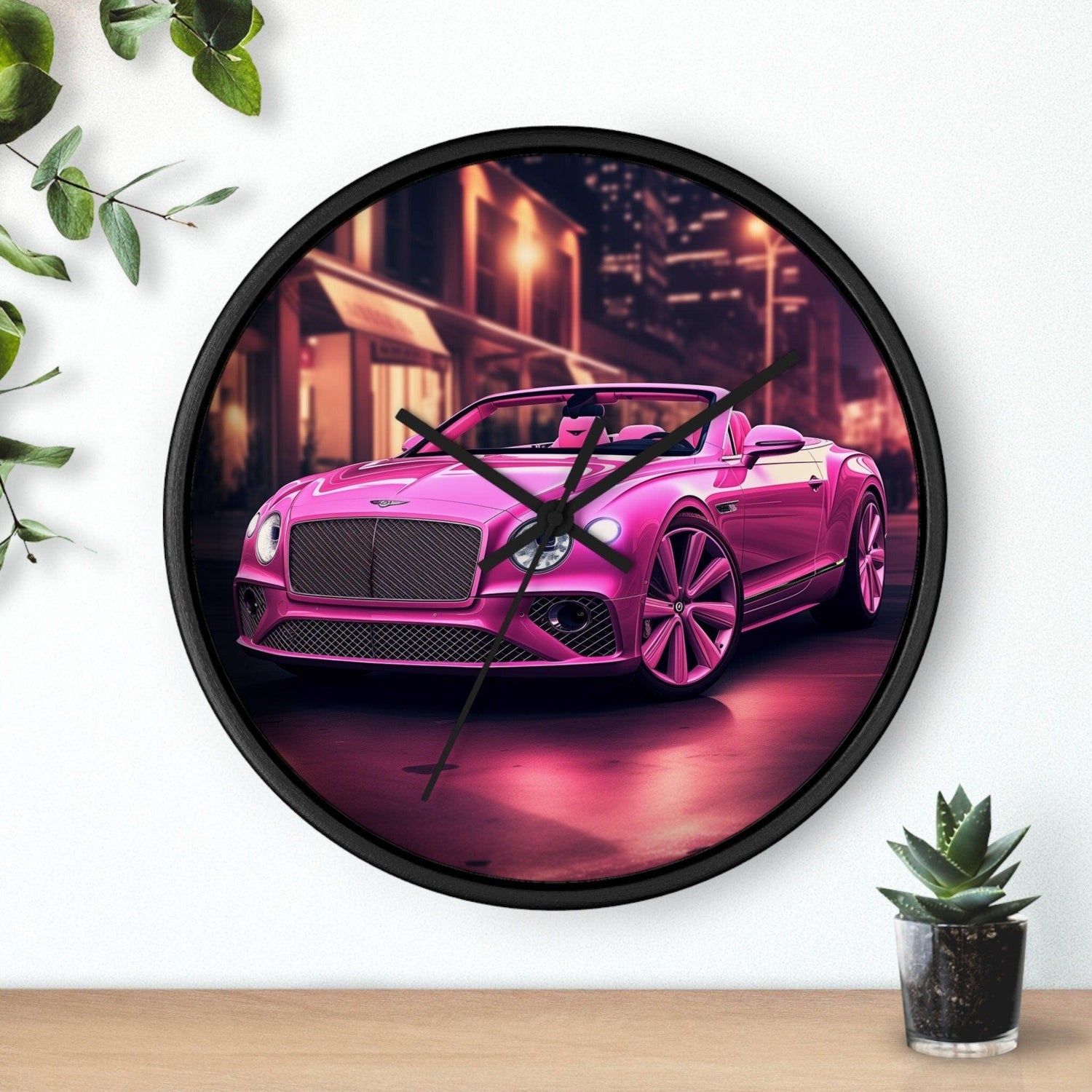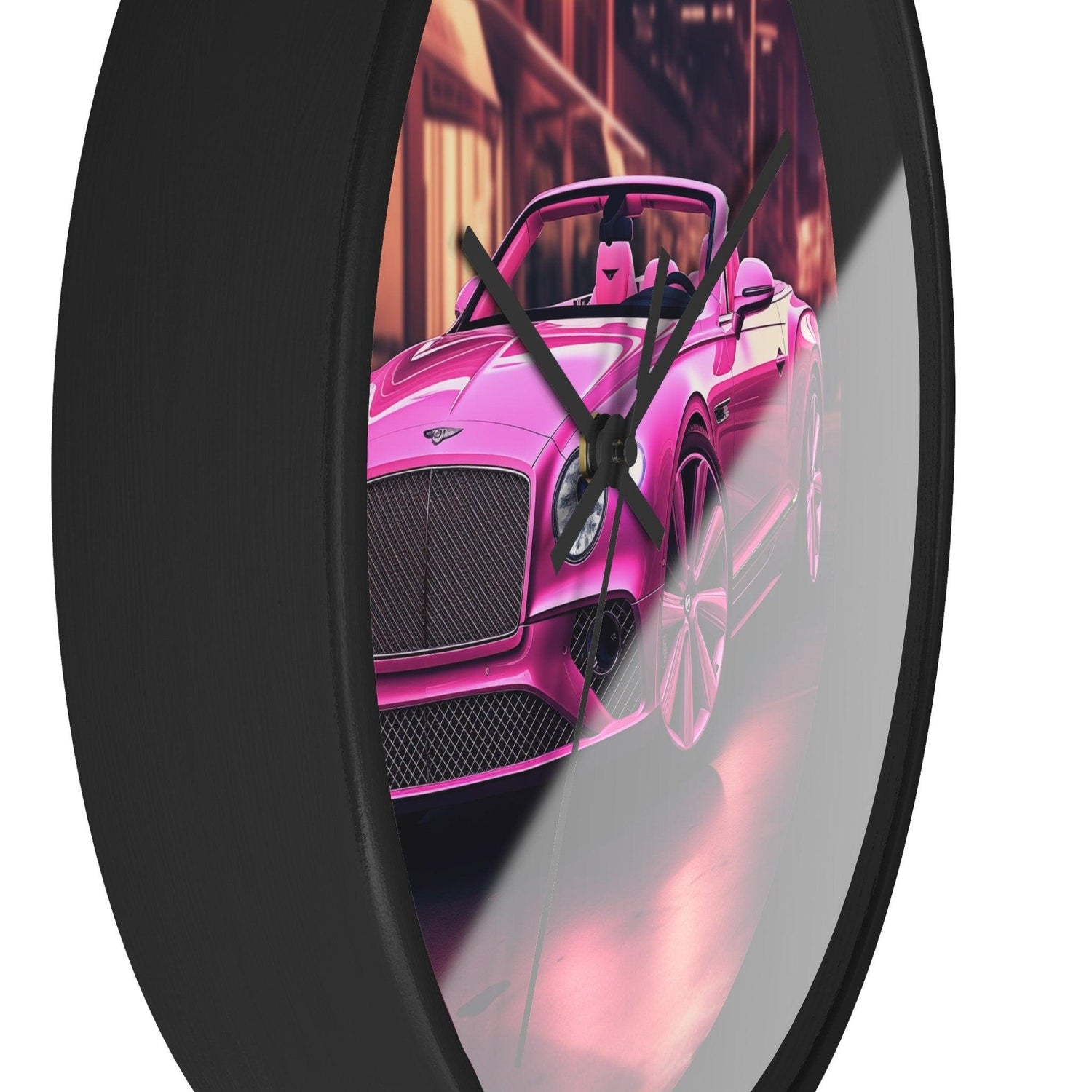 Wall Clock, Pink Bentley exotic vibrant fancy Barbie car design for bedroom hallway living room office upscale luxury wall art home decor