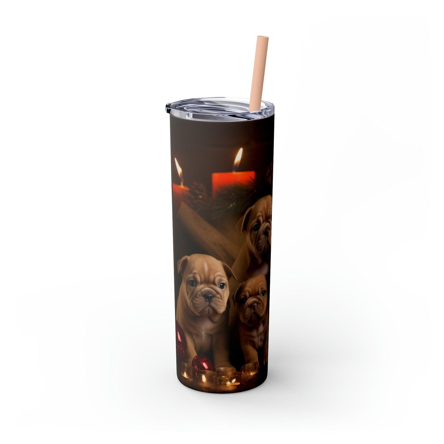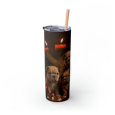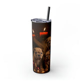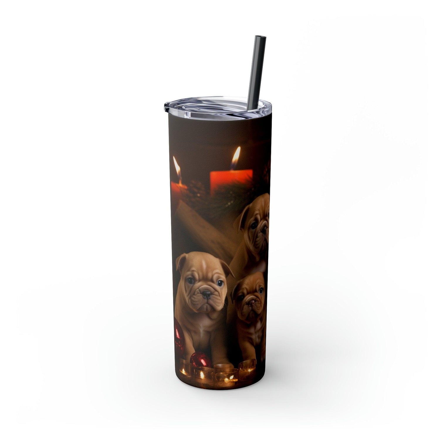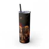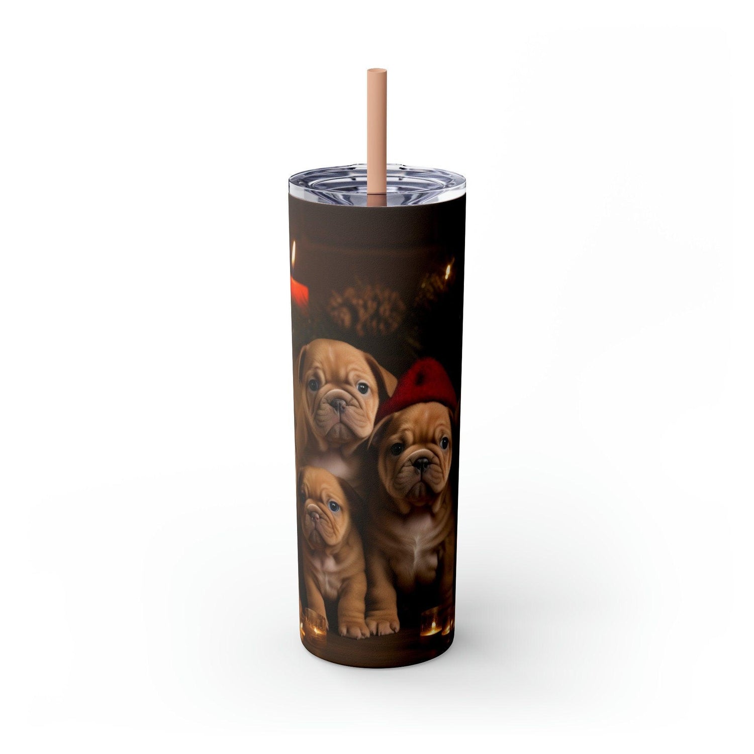 Xmas Holiday Skinny Tumbler with Straw, 20oz - Puppy Xmas, Holiday cups, Travel mug, Pet lover gift, Holiday portraits